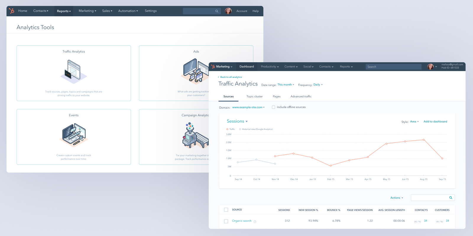Before our changes, HubSpot's reporting system was fragmented, with each app featuring its own version and style of reporting. This led to inconsistent charts and data, and disjointed experiences across different areas like Blog, Email, Website, or Sales data. Customers found it difficult to locate the data necessary for informed decision-making or to gauge their performance from the previous quarter.